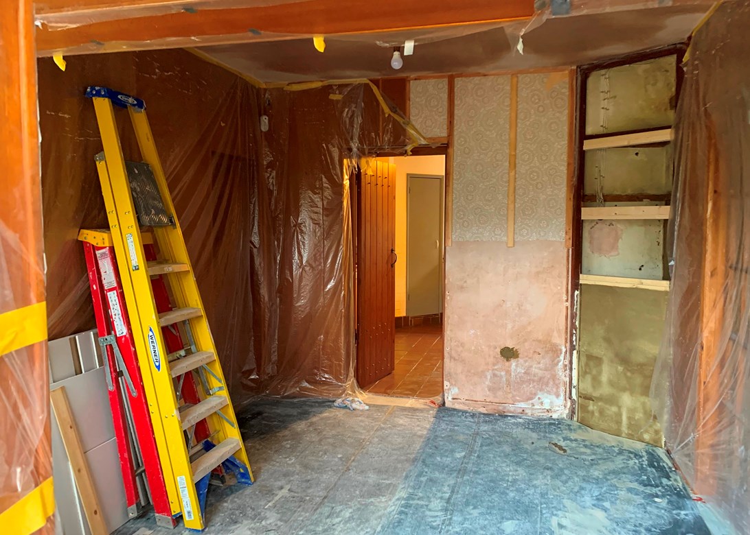 Ceiling tiles and stove gone